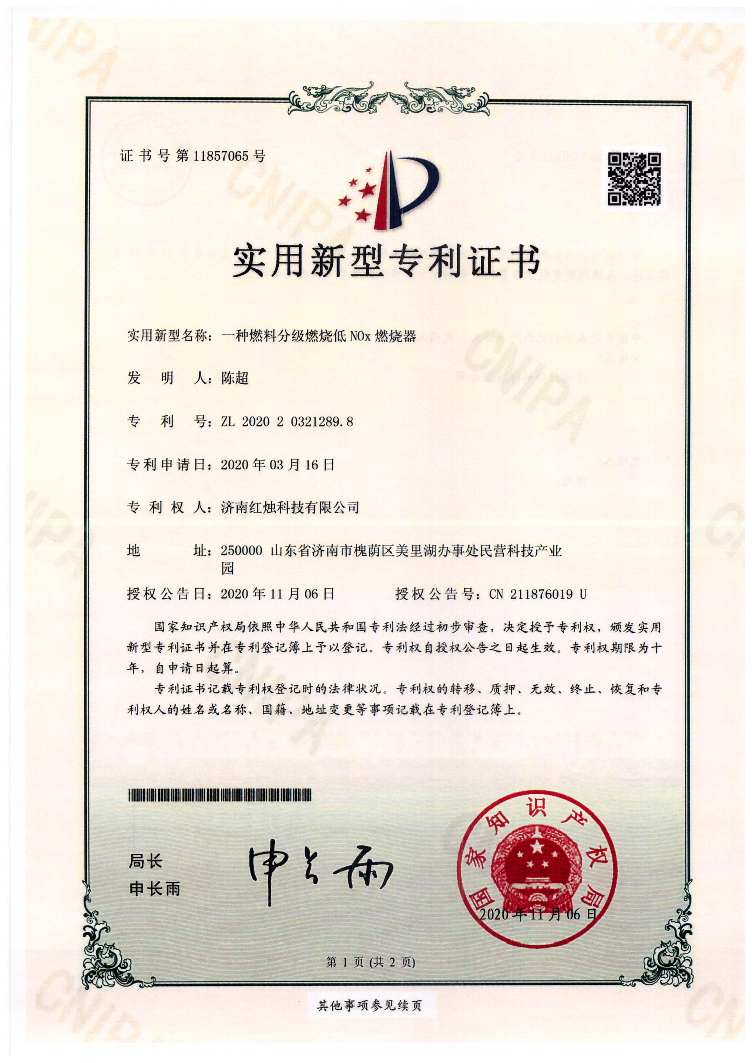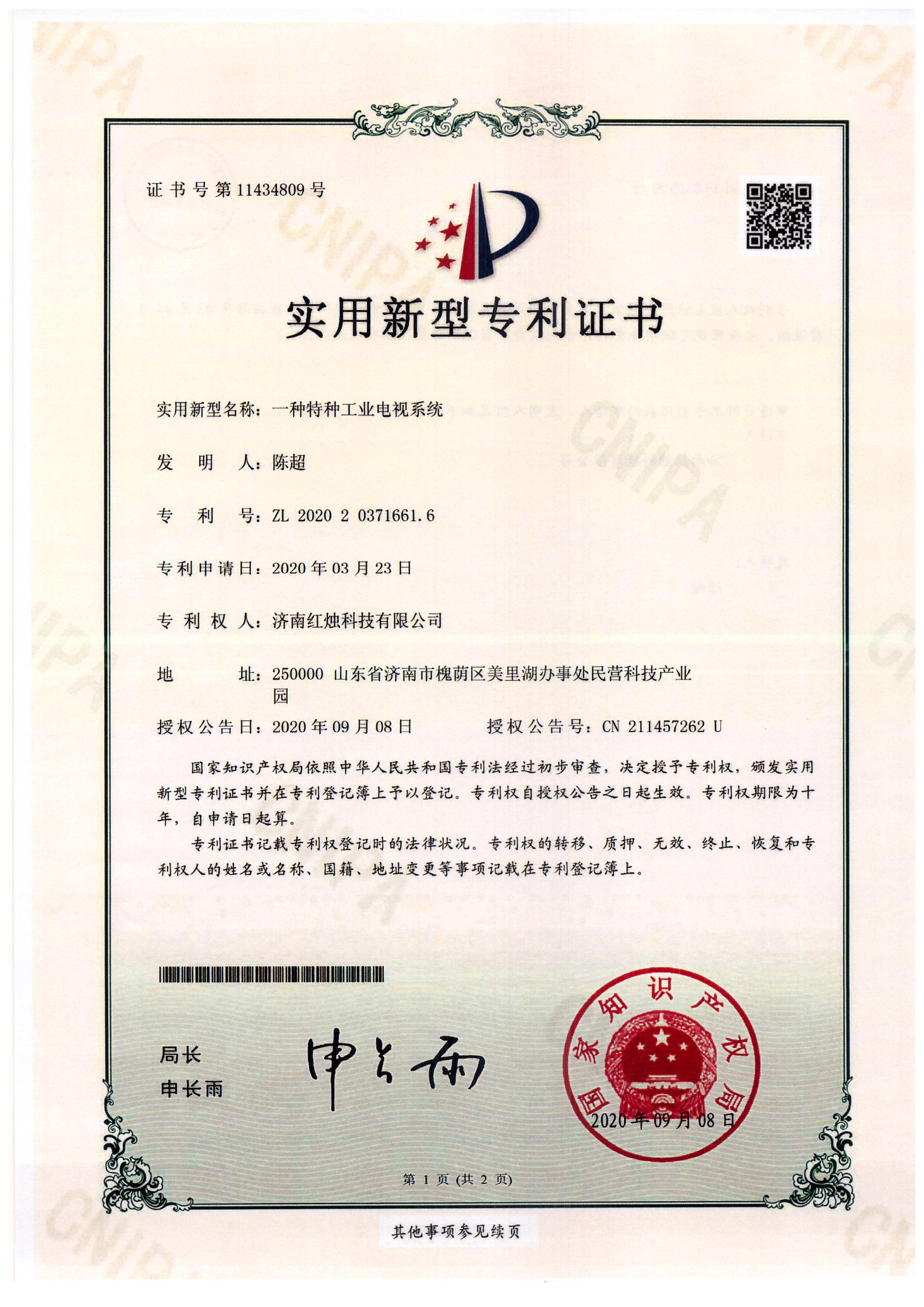 濟南紅燭科技有限公司榮獲實(shí)用新型專(zhuān)利證書(shū)